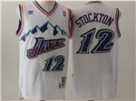 Utah Jazz #12 John Stockton White Hardwood Classics Jersey