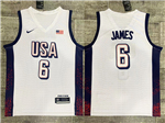 2024 Olympic Team USA #6 Lebron James White Basketball Jersey